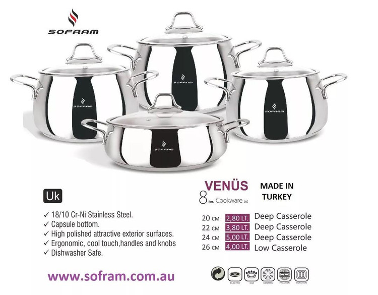 سرویس قابلمه ۸ پارچه سوفرام ترکیه مدل ونوس